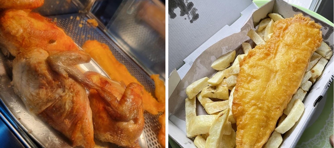 This fish & chip shop is the best! I always have fish and chips or sausage in batter from here and it’s always lovely. Today I opted for the chicken curry with half & half and man oh man it doesn’t disappoint! Hot, fresh and really tasty! Big chunks of chicken (from the ones roasting in the window I guess) Have to try the madras next. Really good food!